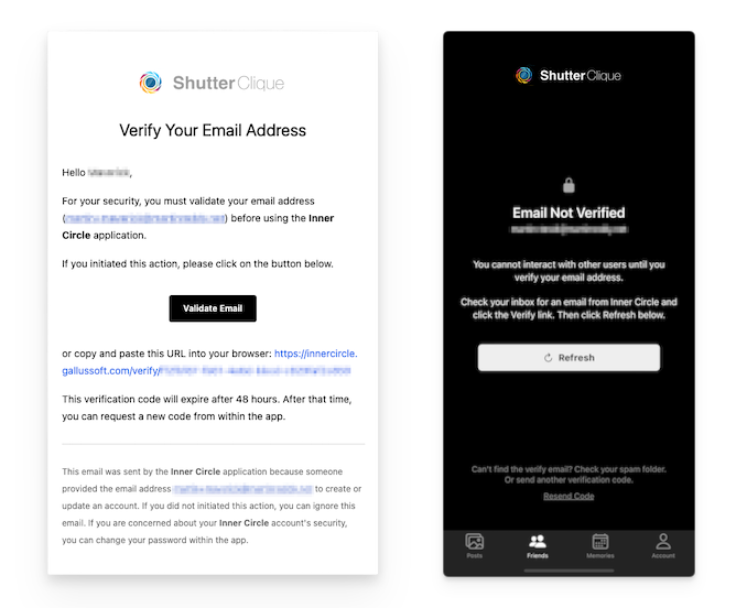 Also note that the verification URL will expire after 48 hours. If that happens, just click the "Resend Code" link on the Friends screen to get a new email with a new code.